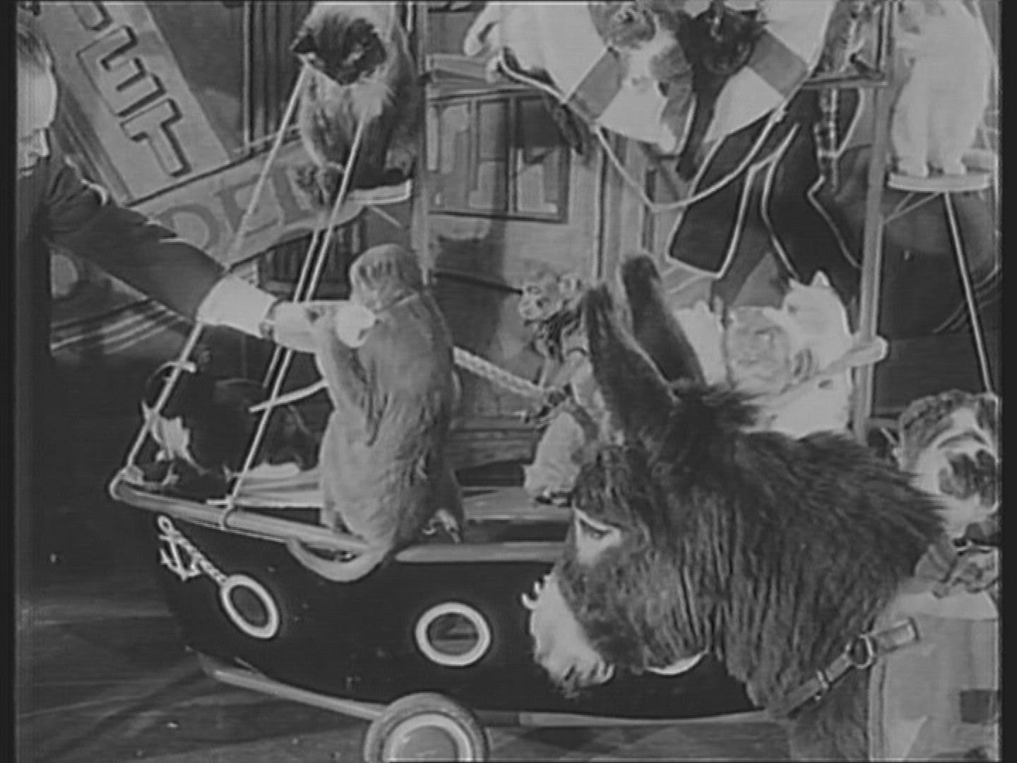 > 1957: Teaching pet monkey to hold hands and walk indoors.