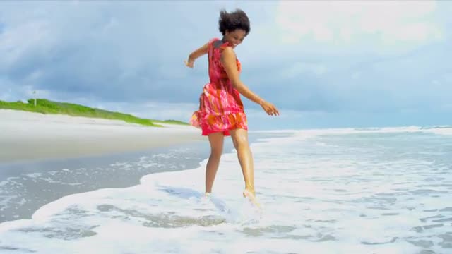 Happy young female girl Caucasian summer clothing simple game windmill eco power energy sun lens flare RED EPIC