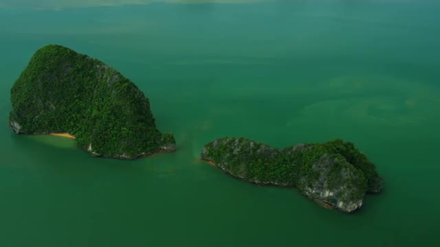 > Aerial Helicopter View Of Evergreen Mountain Forest On Sunny Day In Slow Motion With Retro Style Vin