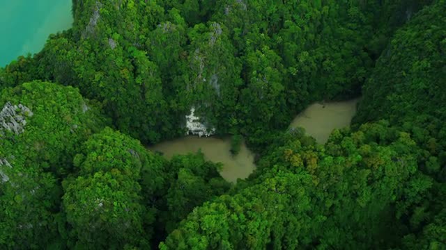 Aerial Helicopter View Of Evergreen Mountain Forest On Sunny Day In Slow Motion With Retro Style Vin