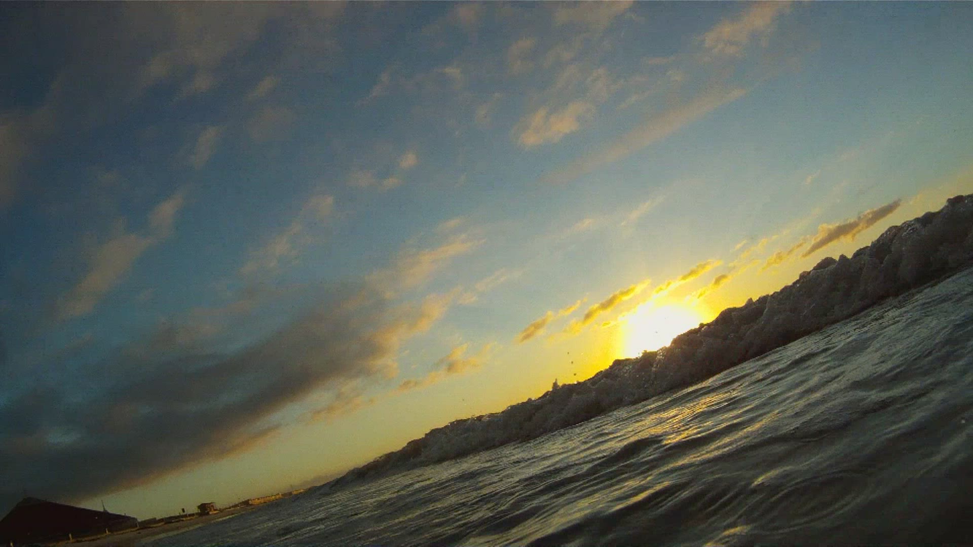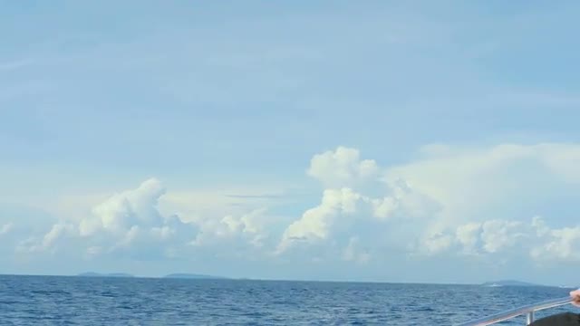 Seascape with cumulus clouds high above the ocean, through the eyes of a traveler by speedboat