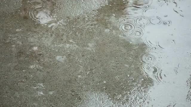 668681 - Rain Drops Falling at the Puddle With Autumn Leaves