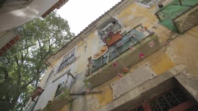 A alleyway from a worm eye view in Lisbon.