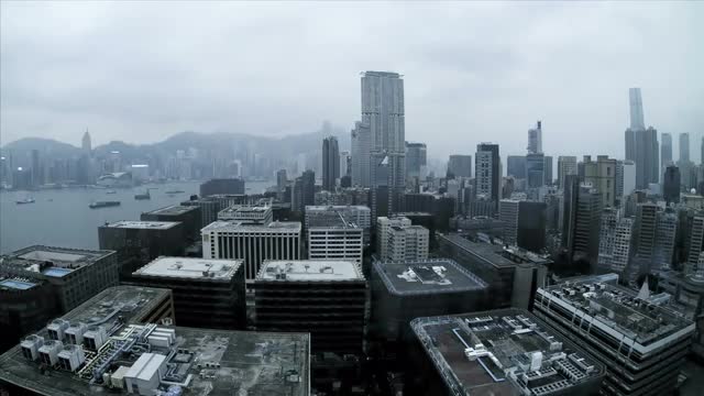 Time lapse view Hong Kong Island and Victoria Harbour exterior buildings, Far East, Asia