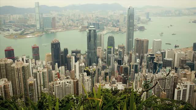 > Hong Kong time lapse illuminated night view Victoria Harbour, Asia