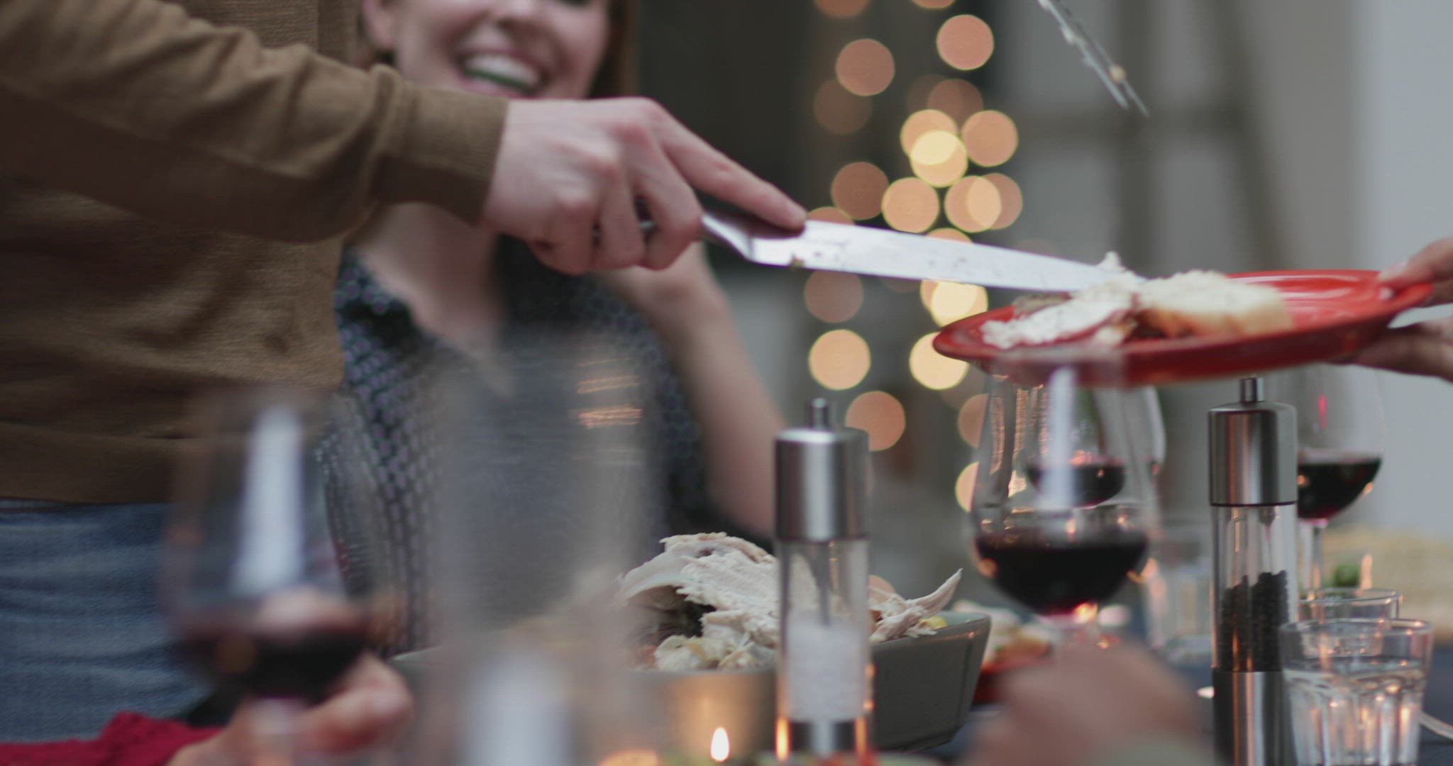 1963: Thanksgiving turkey plate separated dark & white meat served with empty set dinner table.