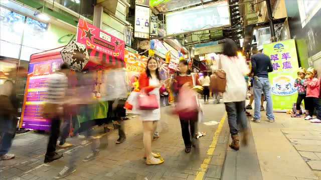 Hong Kong - November 2012: Market traders selling products on the road to locals and tourists, Far East, Asia, Time Lapse