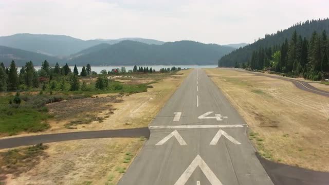 1000213 - California circa-2017, Landing at airstrip by lake, California. Shot with Cineflex and RED Epic-W H