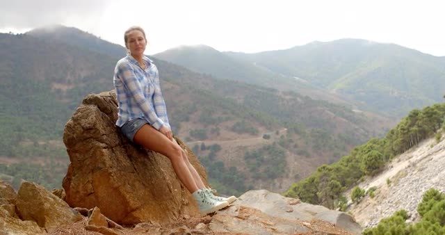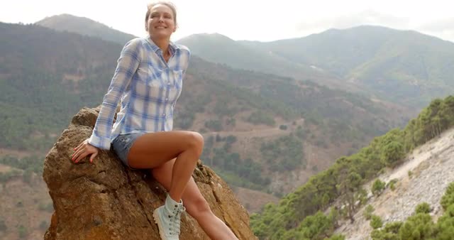 397005 - Girl Resting Near Rock in Spanish Mountains