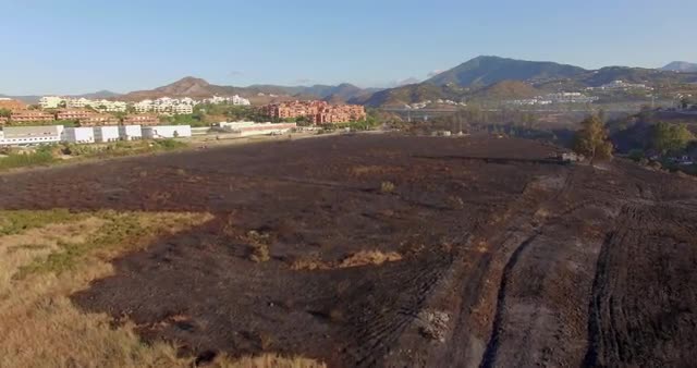 Aerial View. Drone Flight Over Field After Fire. Spanish Andalucia