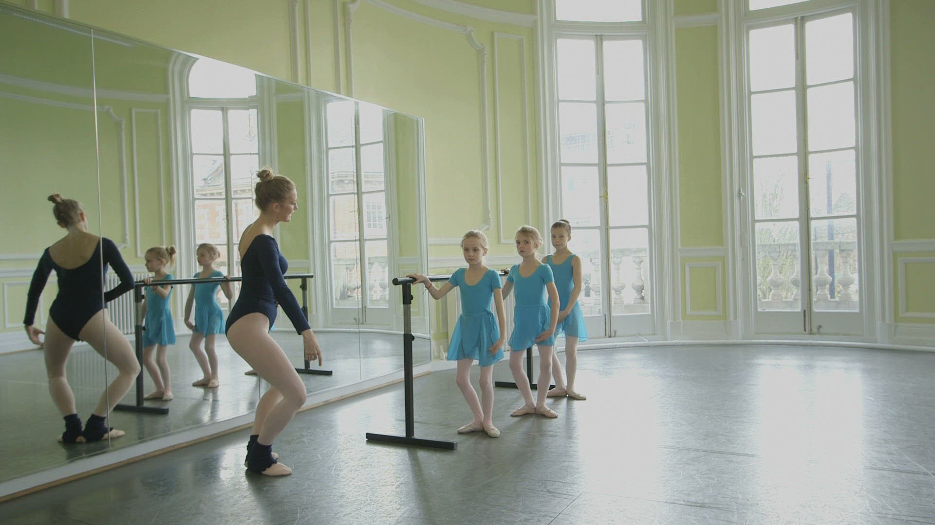> 1964: Ballet teacher giving instruction to the young girls practicing for the show.
