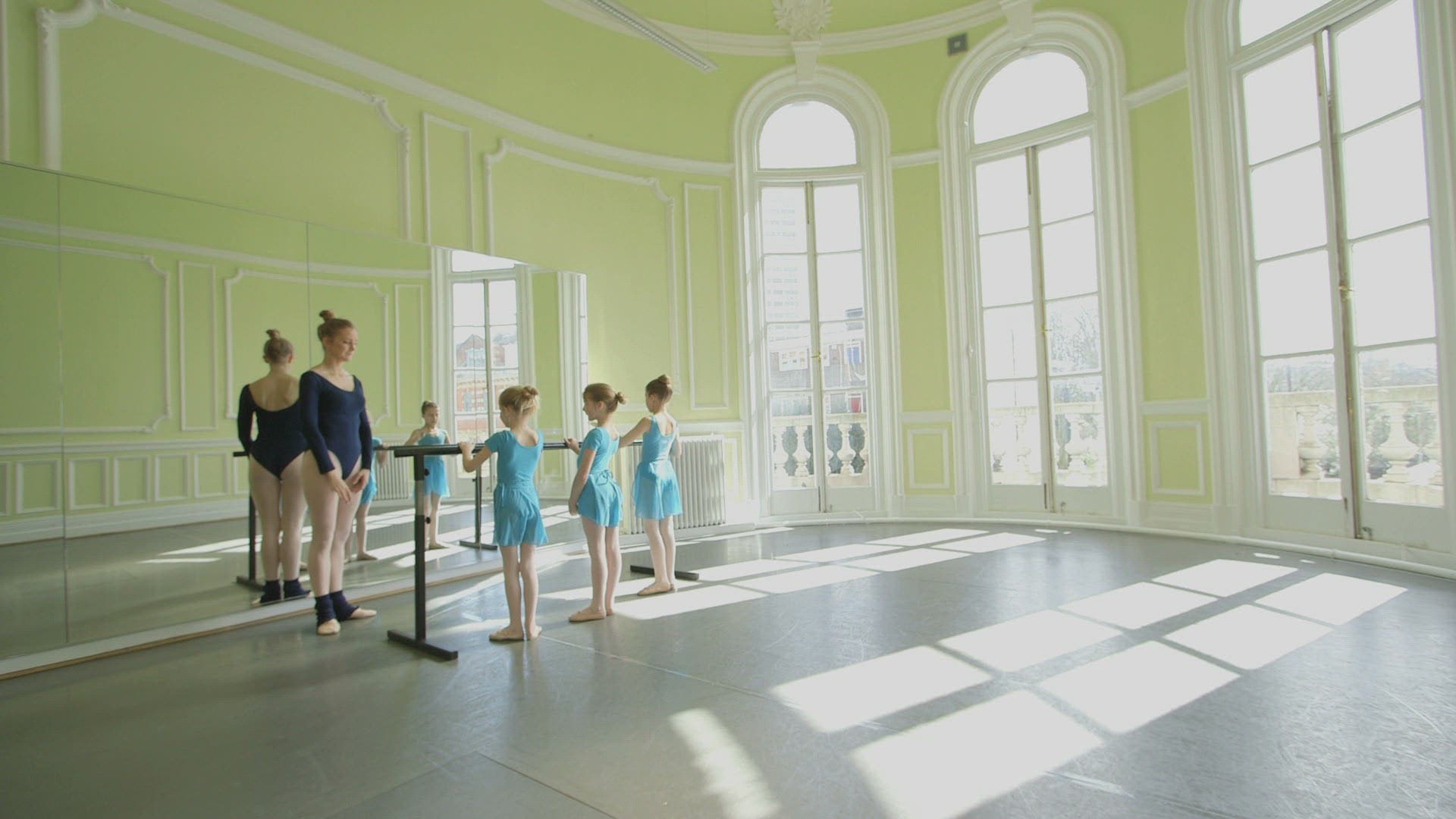 1964: Ballet teacher giving instruction to the young girls practicing for the show.