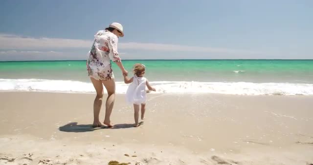 Cute Girl With Mummy on The Beach in Slow Motion Video