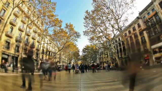 Crowded Les Rambles boulevard.
