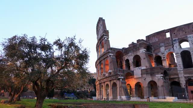 Dawn with views of Coliseum. Camera movement, TimeLapse. 4K