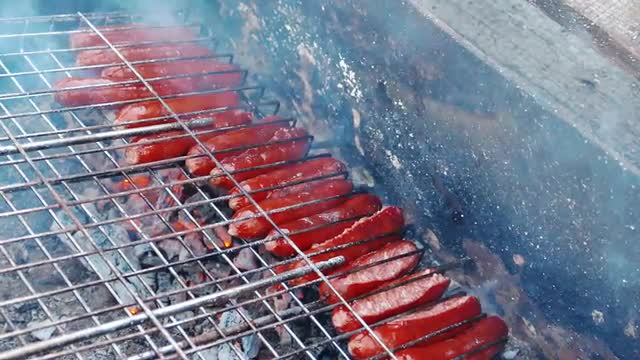 531928 - Preparing Grilled Sausages on Barbeque