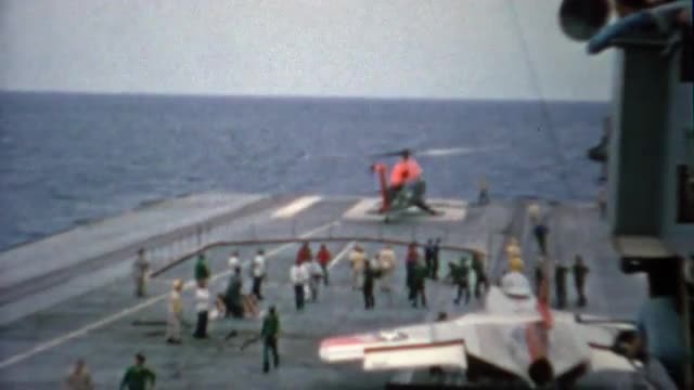 > 1956: US Navy V-22 planes on USS Makassar Strait aircraft carrier ship.