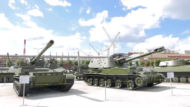 Vintage tanks. Pyshma, Ekaterinburg, Russia - August 16, 2015 Museum of military equipment 'Battle Glory of the Urals'. UltraHD (4K)