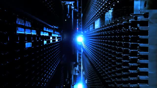 Computer data storage server room automated machine storing hard drives