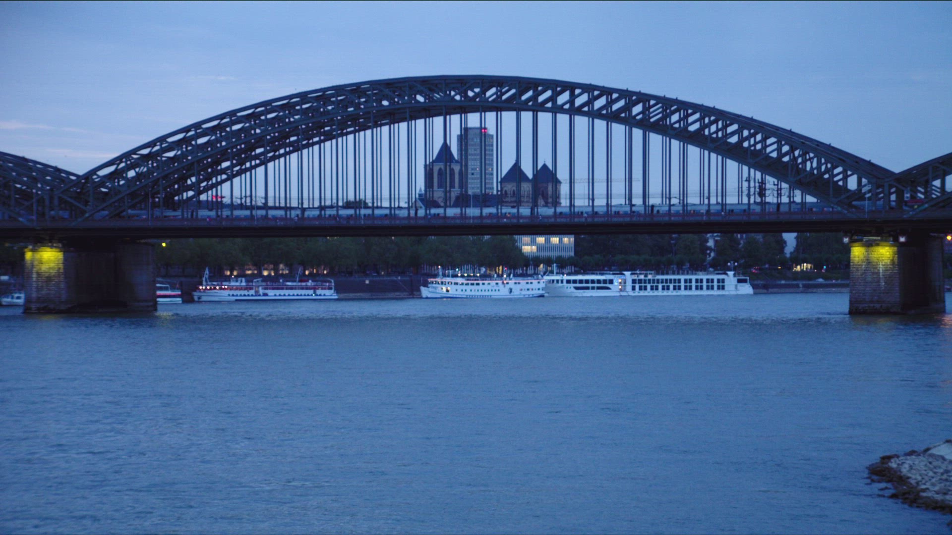Time lapse unique view of the Brooklyn Bridge and FDR Drive traffic at night.