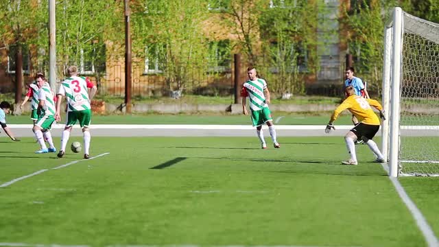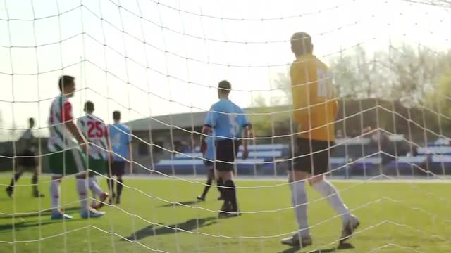 1572674 - Locked off shot of a soccer player kicking a ball towards the camera then bouncing back to him