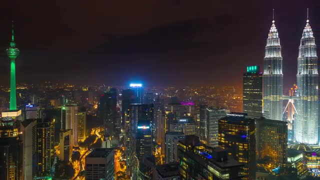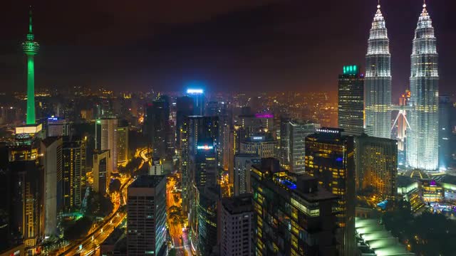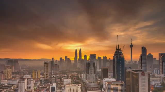 Day to night sunset at Kuala Lumpur city. Showing the famous landmark, Kuala Lumpur Tower. View from balcony of a high level building.