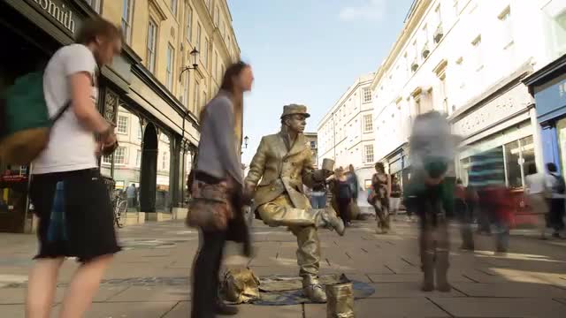 A timelapse of a Human statue. Shot on Union street in the centre of Bath.