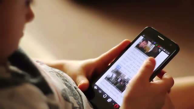 417479 - Close-up of a smartphone in the hands of a child.