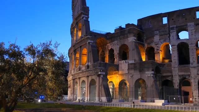 Entrance to the Colosseo at dawn. Rome, Italy. 4K