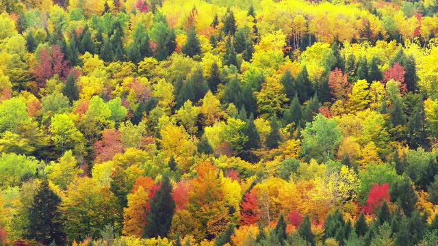 650243 - Aerial Shot Over Beautiful Forest Trees with Vibrant Autumn Season Colors