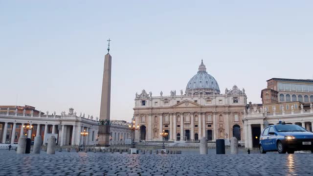 St. Peter's Square at dawn, Vatican City, Rome, Italy. Time Lapse. 4K