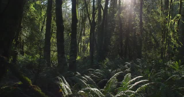 Dolly shot of a rain forest in Washington