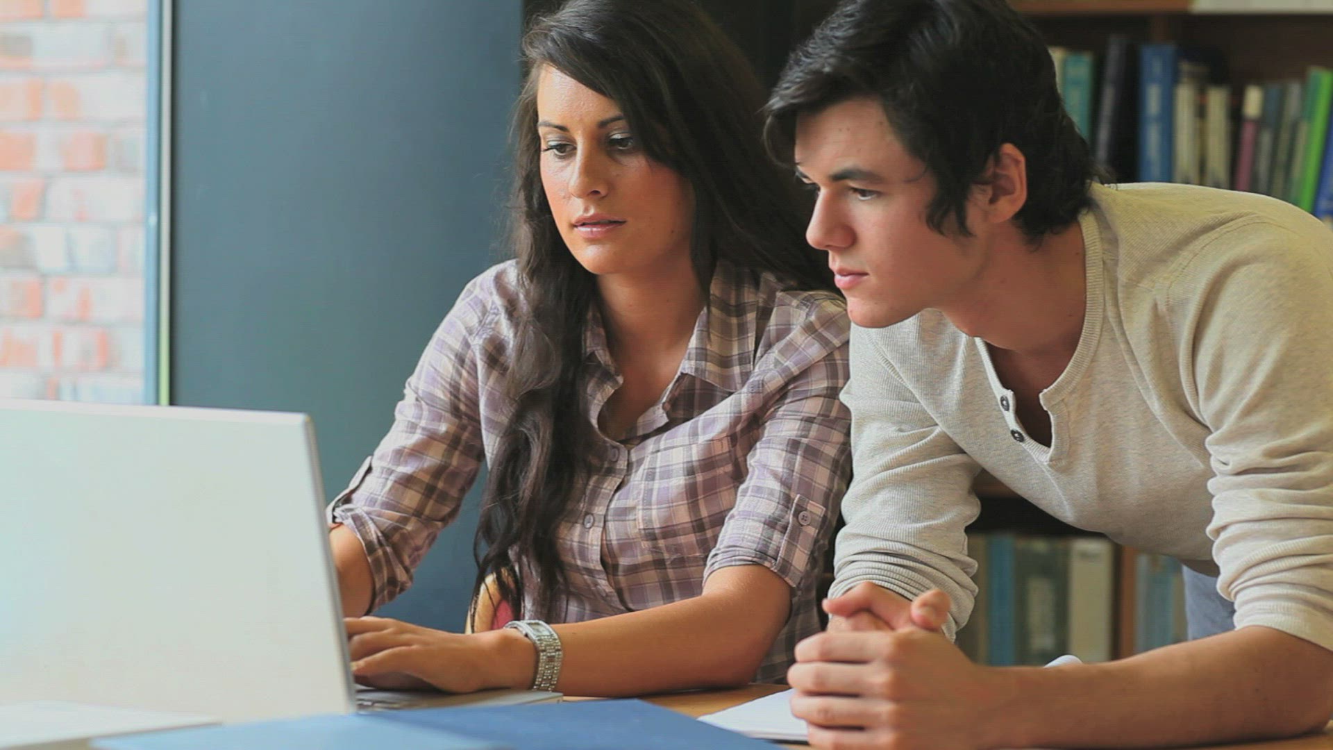 58078 - Shot of students studying at a library.
