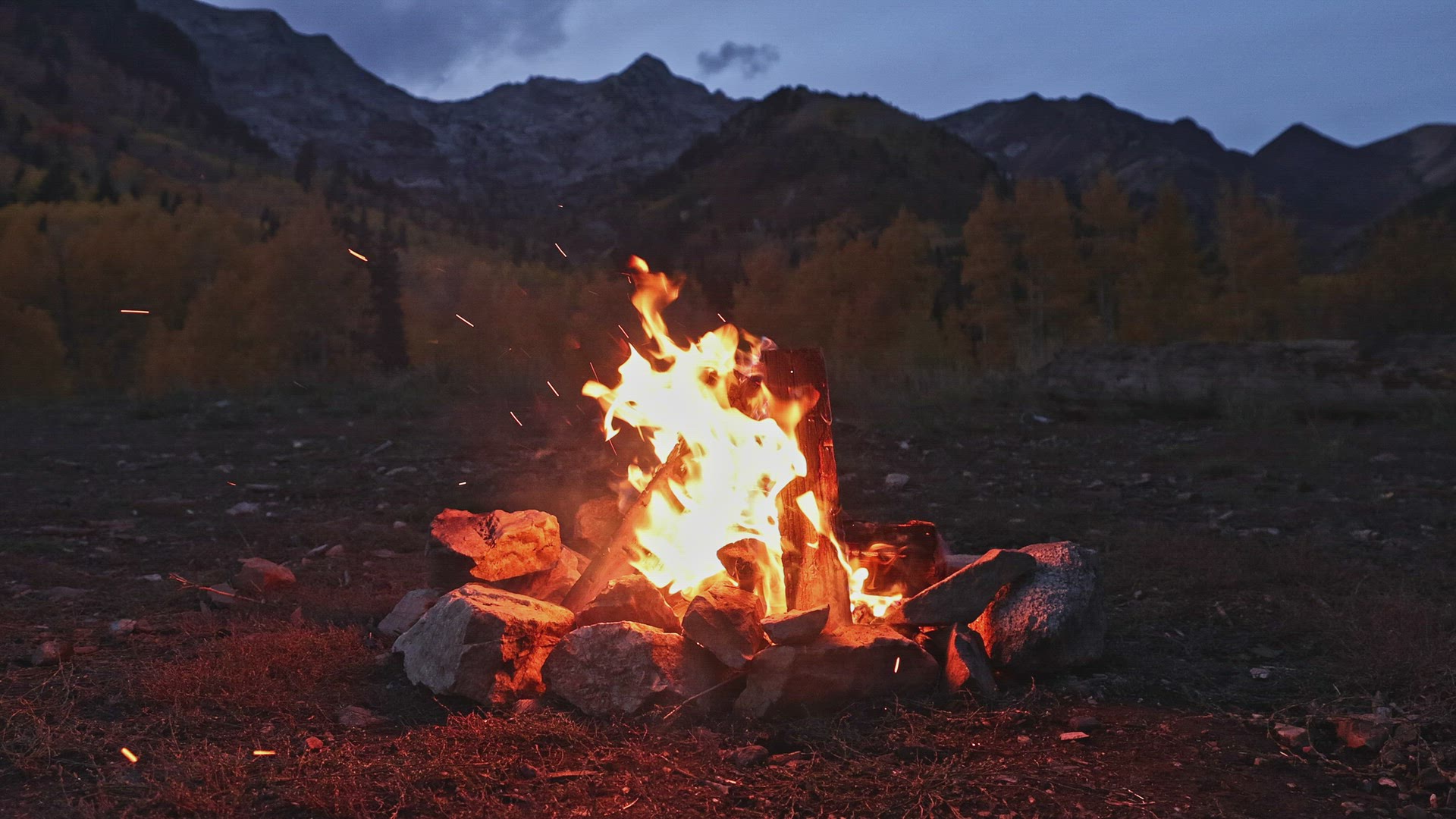 > Slow motion fire flame and sparks rise as charcoal is being dropped inside a grill
