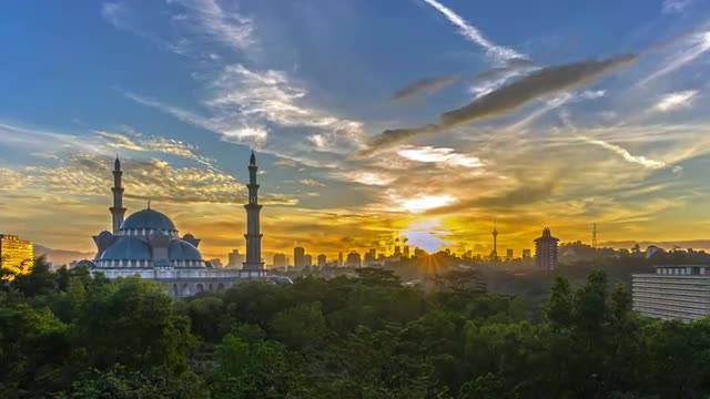 4k time lapse sunrise at Federal Mosque Kuala Lumpur