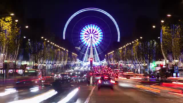 A Timelapse View on Paris Ferris Wheel in France by Night