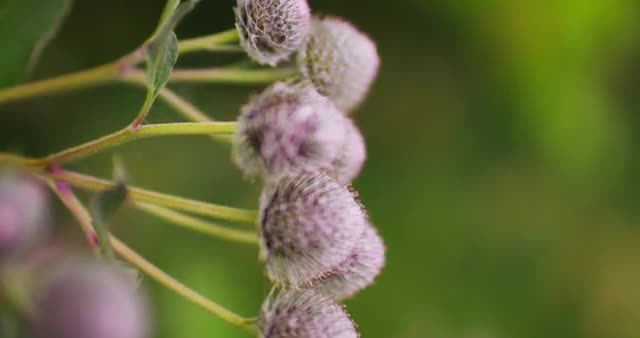 Panning over a purple blossom found in a naturally overgrown field.