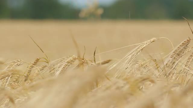 Close-up of a ripe wheat straws waving in wind