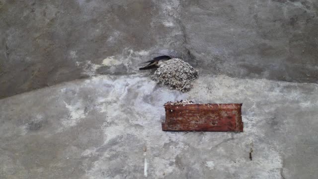 Bird Nesting on the Side of a Wall. A great piece of stock in 4k definition, perfect for film, tv, documentaries, reality TV, trailers, infomercials and more!