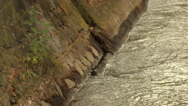 River Flowing along Wall. A great piece of stock in 4k definition, perfect for film, tv, documentaries, reality TV, trailers, infomercials and more!