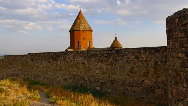 Old Monastry Building Behind a Stone Wall. A great piece of stock in 4k definition, perfect for film, tv, documentaries, reality TV, trailers, infomercials and more!