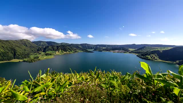 376779 - Timelapse of clouds passing over the twin-lake of Lagoa das Sete Cidades in the Azores, Portugal