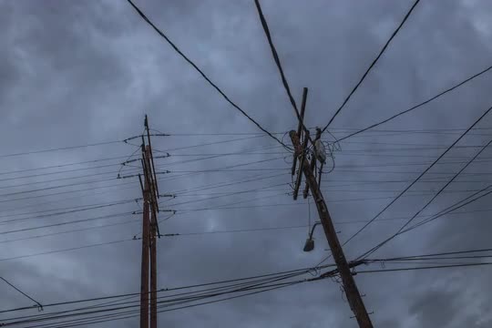 Wide low angle timelapse of the clouds passing by some powerlines.