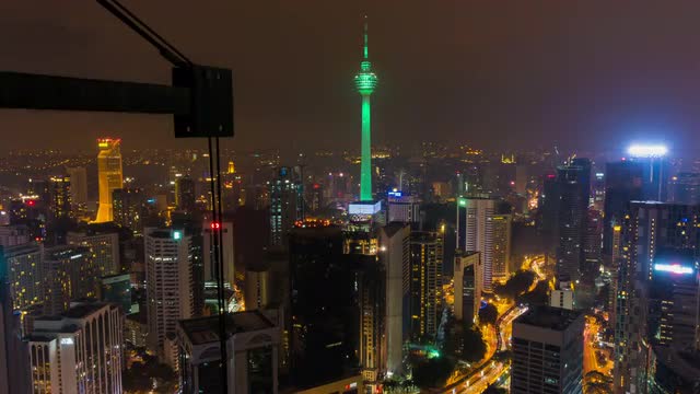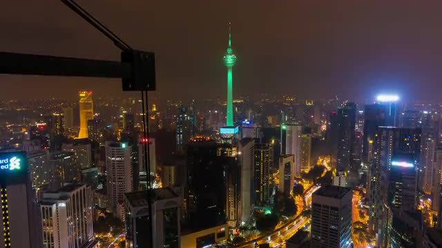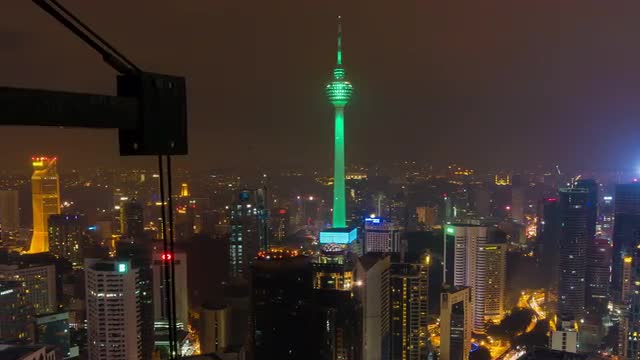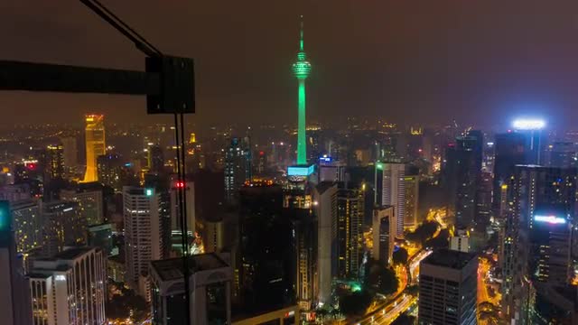 Time Lapse of Kuala Lumpur Tower light up with the color of the flag of France - Blue, White & R