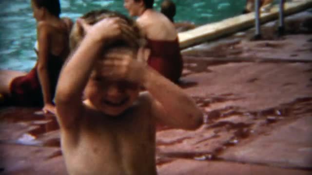 > 1954: Goofy boy slicking back hair at the public pool like the celebrities of the time. CHICAGO