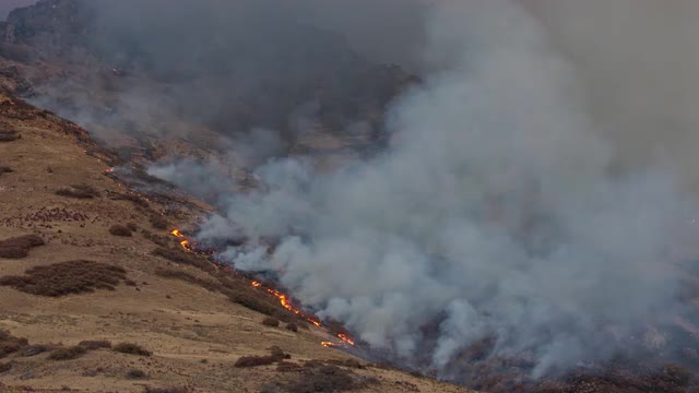 1363249 - Smoke rising as wildfire burns through the brush on mountain