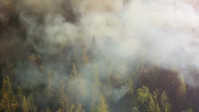 1363256 - Smoke filling the sky as wildfire burns across face of mountain