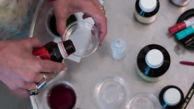 An artist is painting on silk.