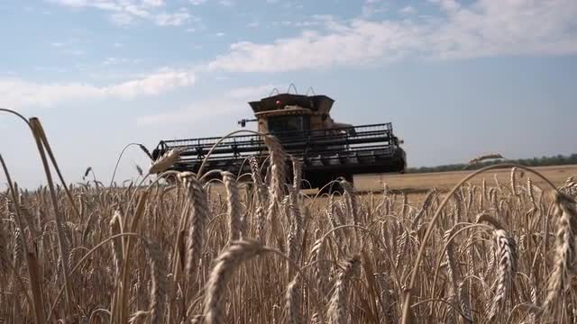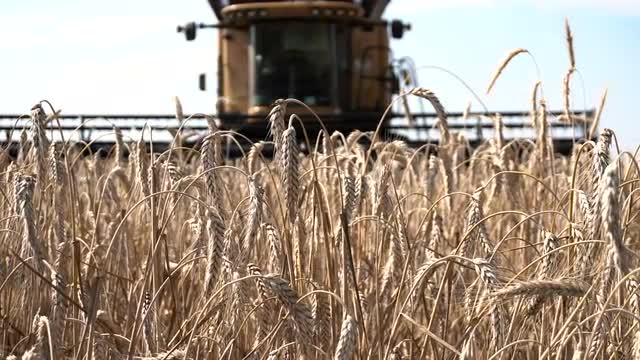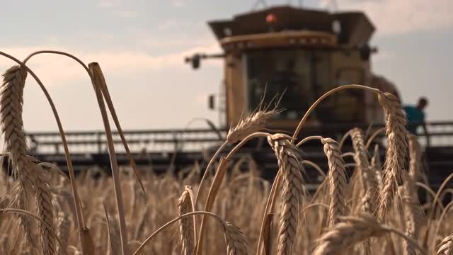 KVASICE,CZECH REPUBLIC,AUGUST 3.2015 last minutes of wheat and straw harvesting before harvest supper in the evening in Kvasice,Czech republic