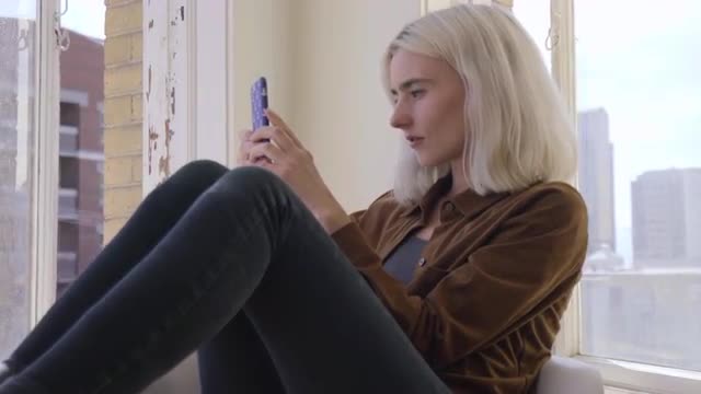 Steadicam shot of a young man using professional camera indoor to make cityscape photos or shoot video through the window on a sunny day